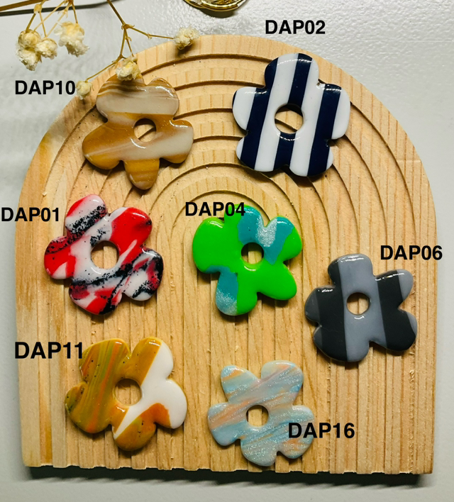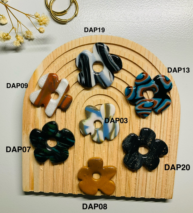 Pampilles interchangeables "DAPHNÉ " 30mm en pâte polymère,resine UV . Vendues par paire ; INTERDITES AUX MOINS DE 6 ANS (ingestion petits objets)