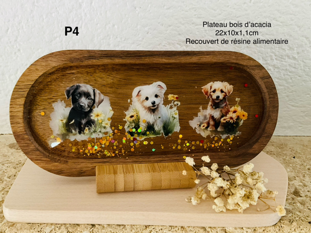 Plateau bois ,animaux,recouverts de résine spéciale « alimentaire » différents modèles